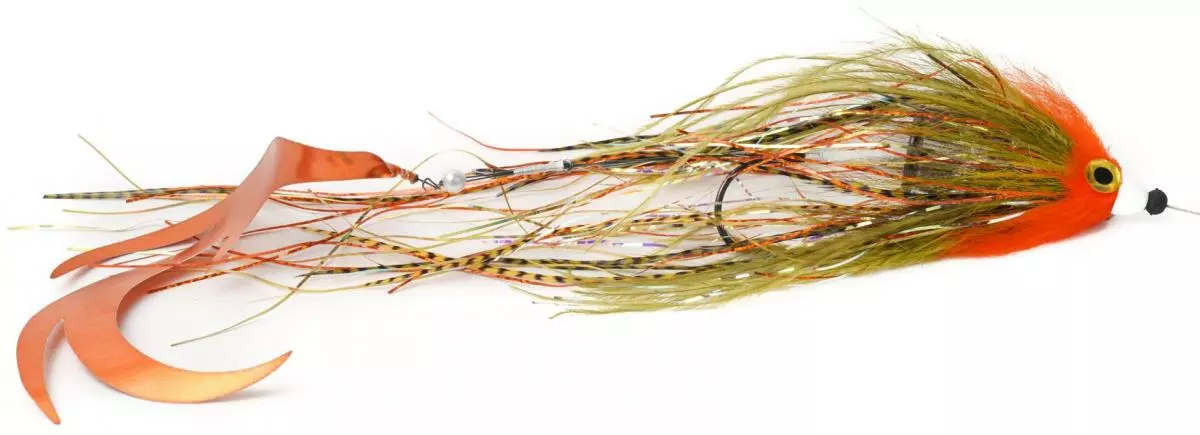 The Dragon Tail on the streamer provides extra action underwater. Also included with this streamer is a stinger hook tied in the back.
