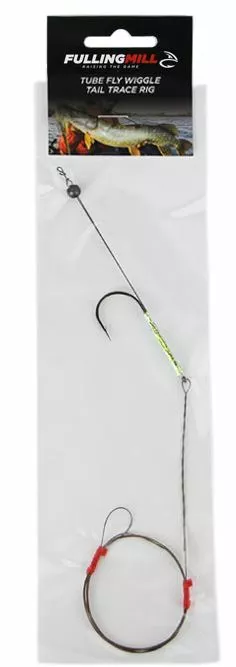 A single hooked wiggle tail trace rig, to be used in conjunction with Fulling Mill Pike Tube Flies. Slide the loop of the trace through the plastic tube of your fly and seat the eye of the hook in the rear of the tube. The trace is then attached ‘Loop to Loop’ to your fluorocarbon leader.