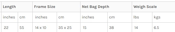 - Net bag depth: 38 cm