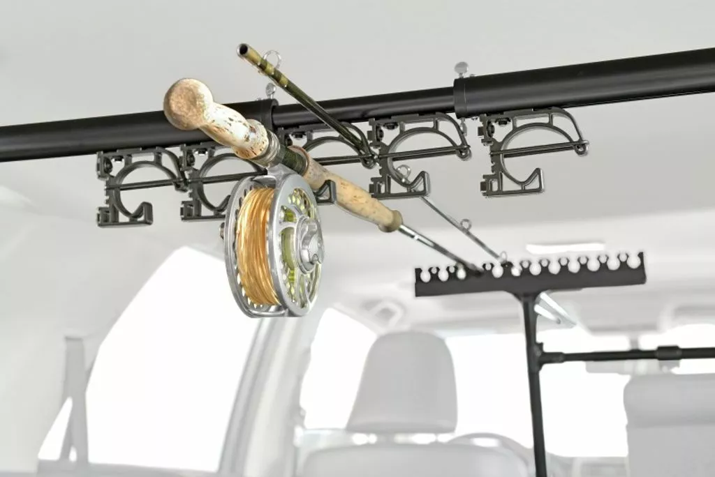 RodMounts has designed a one-model-fits-all rod rack for SUV’s and stationwagons. The ROD-UP is surprisingly unobtrusive – with or without rods. The rods can be placed high in the center of the vehicle without interfering with passengers and plenty of room for your gear and dogs.