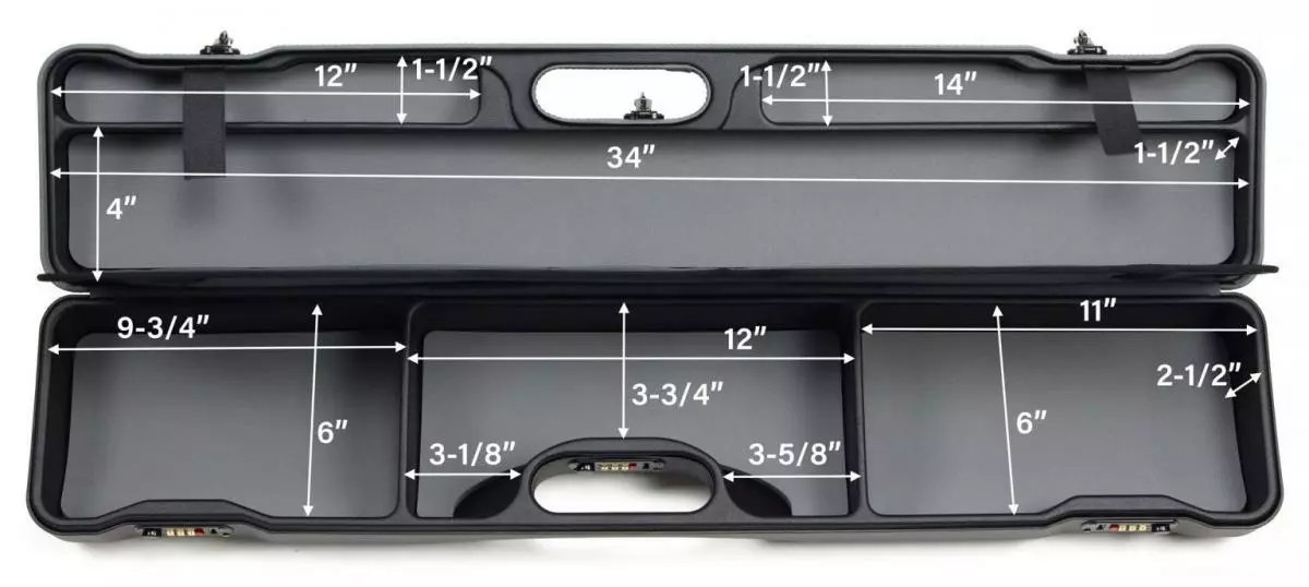 Now with a newly expanded interior. The most advanced ultralight fly rod and reel carrying case from SEA RUN CASES. The best fly fishing rod travel cases for air travel. Secure, ultraHARD, and compact luxury fly fishing gear case for serious fly fishing anglers. SEA RUN RIFFLE fly rod and reel cases are constructed of a patented double-wall composite for the best rigid case protection. Now check your fly fishing gear at the airline counter with total confidence. Secured with three TSA-compliant combination locks for maximum security. The case features a more compact design than its bigger brother the Expedition Classic and & Renegade QR. The Interior bottom features 3 wide compartments that are extra deep for fly reels, fly boxes, and gear. The divider wall separates the top from the bottom to fit up to 3 fly rods (4-piece 11ft) plus additional storage. Negrini of Italy has over 40 years of firearm case-making knowledge, expertise, and fine gun protection… why trust anything else? Travel Confidently With Your Sea Run Fly Rod and Reel Case.Negrini Case.